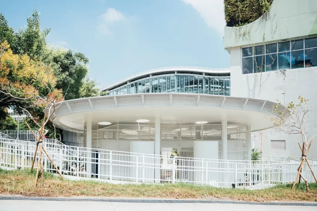 走進台中文心森林公園,一棟潔白建築在樹影之間若隱若現。通透的白色擴張網、像是漂浮在半空中的圓形屋頂,天光從天窗落下,灑在步道與洗手台上。乍看之下,你可能會以為這是一座小型美術館,或是哪個展演空間的入口,但其實,它只是一間公廁——一間被重新認真對待的公廁。