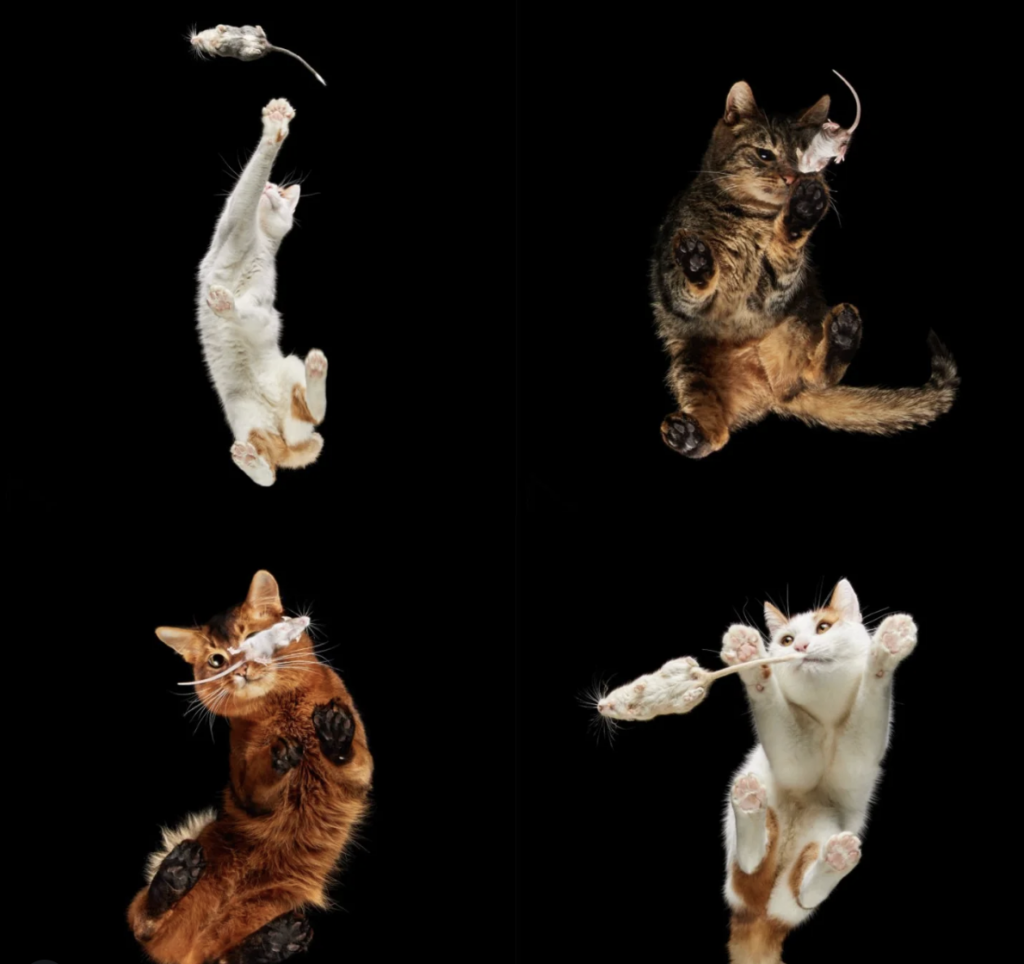 這個系列的起點,其實很日常。某次,Burba 在網路上看到一張貓咪趴在玻璃上的照片。那種有點扁平、帶著重量感,又同時有點滑稽的視角,讓他意識到:也許這不是一張偶然的趣味照片,而是一種可以被好好發展的觀看方式。