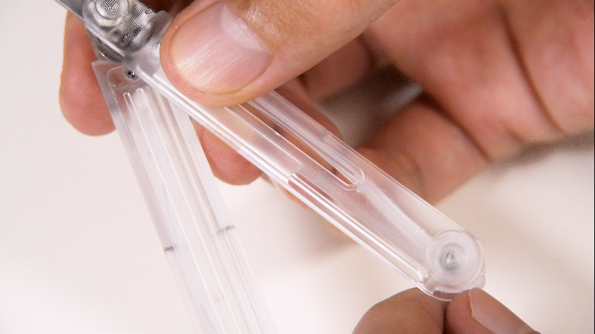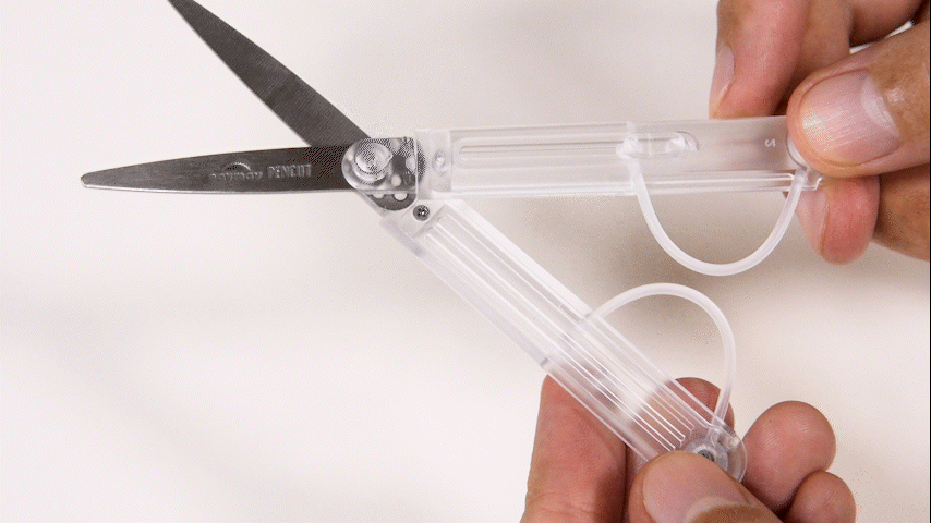 多數筆型剪刀為了縮小體積,通常都會犧牲手感。刀柄偏小,或改成彈簧結構,剪起來總覺得輕飄飄的,不太能好好施力。PenCut 把這件事處理得很俐落。滑動上方機關後,隱藏在筆身裡的手把環會彈出來,整支剪刀瞬間從細長筆狀變成比較接近一般剪刀的握持方式。實際拿在手上,穩定度比常見的迷你剪刀好很多,剪紙、拆包裝、修標籤時都順手不少。