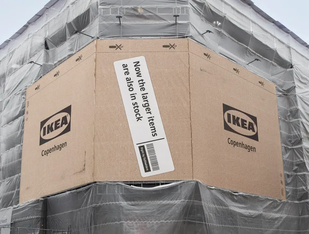 在哥本哈根市中心,巴士、公車候車亭、施工鷹架,甚至整面建築外牆,被包裹成巨型牛皮紙箱的模樣。沒有產品照,沒有滿版促銷,只留下一句直白訊息:「大型家具,現在也有現貨。」這場名為「Flatpack CPH」的戶外行動,由 Marketsquare 為 IKEA 哥本哈根市中心門市策劃,目的並不華麗,只是想改變一個長年存在的誤解。
