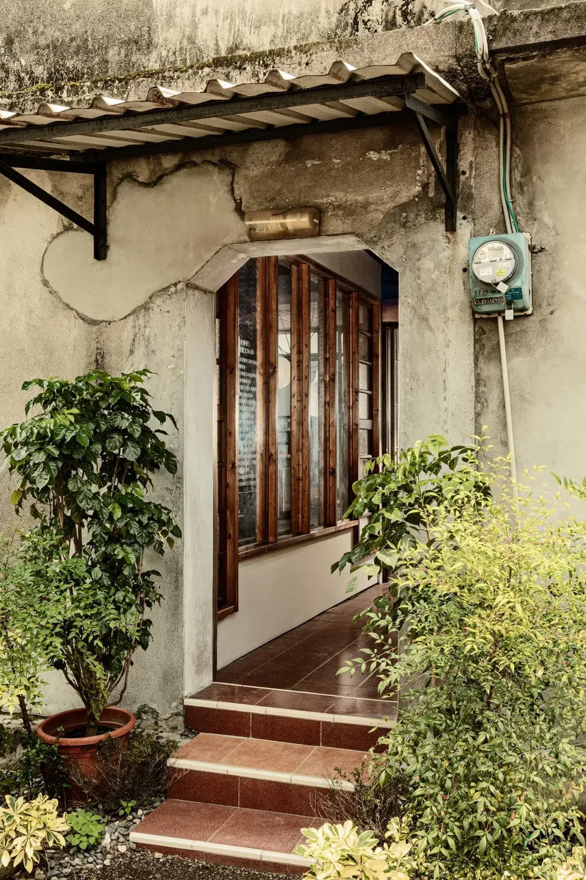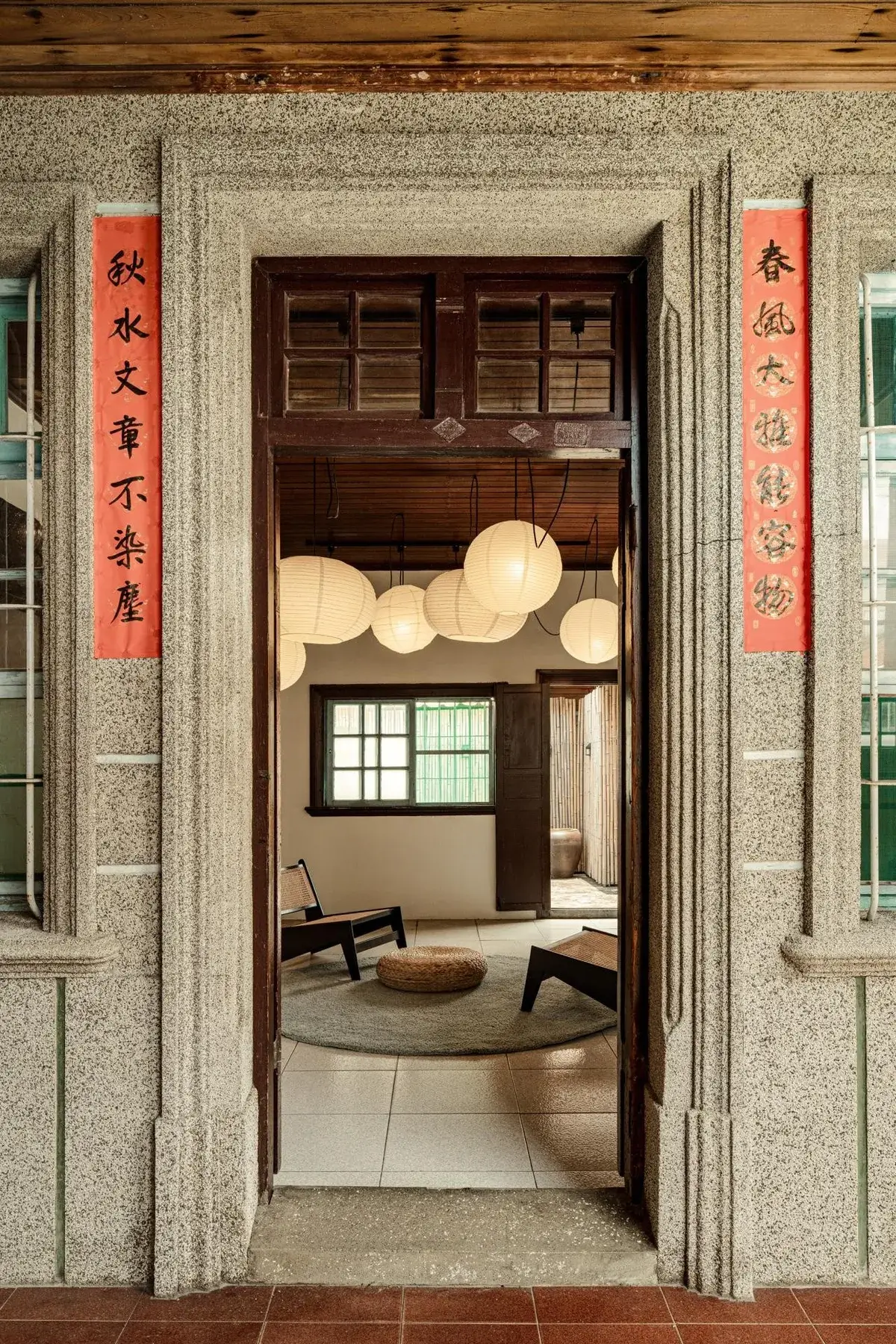 風從院子吹進屋裡,紅磚的粗糙與玻璃的透亮並置,老屋的界線因此變得柔軟。