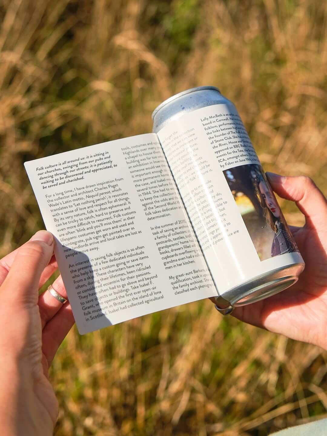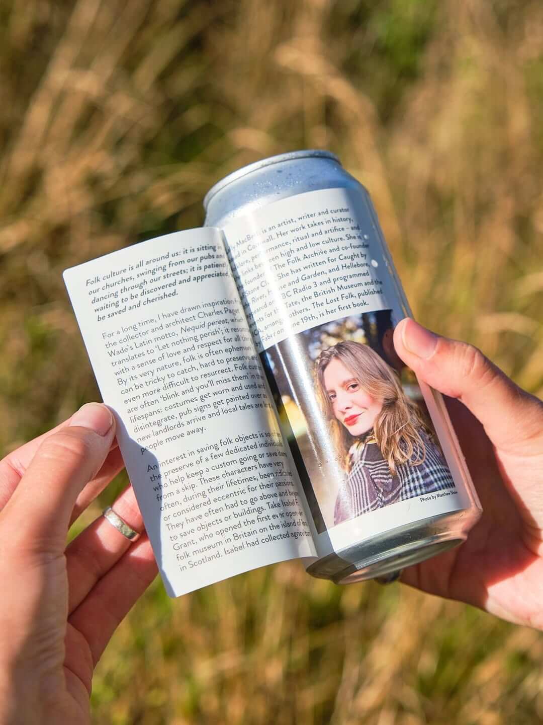 他們推出了「小說啤酒」,啤酒瓶身像多長出了一頁薄薄的書頁,消費者可以把這片標籤撕開、攤平,慢慢閱讀。上頭印的是作家 Lally MacBeth 新作《The Lost Folk》的節錄片段,篇幅不長,大約就是一瓶啤酒從冰涼到喝完,所需要的時間。