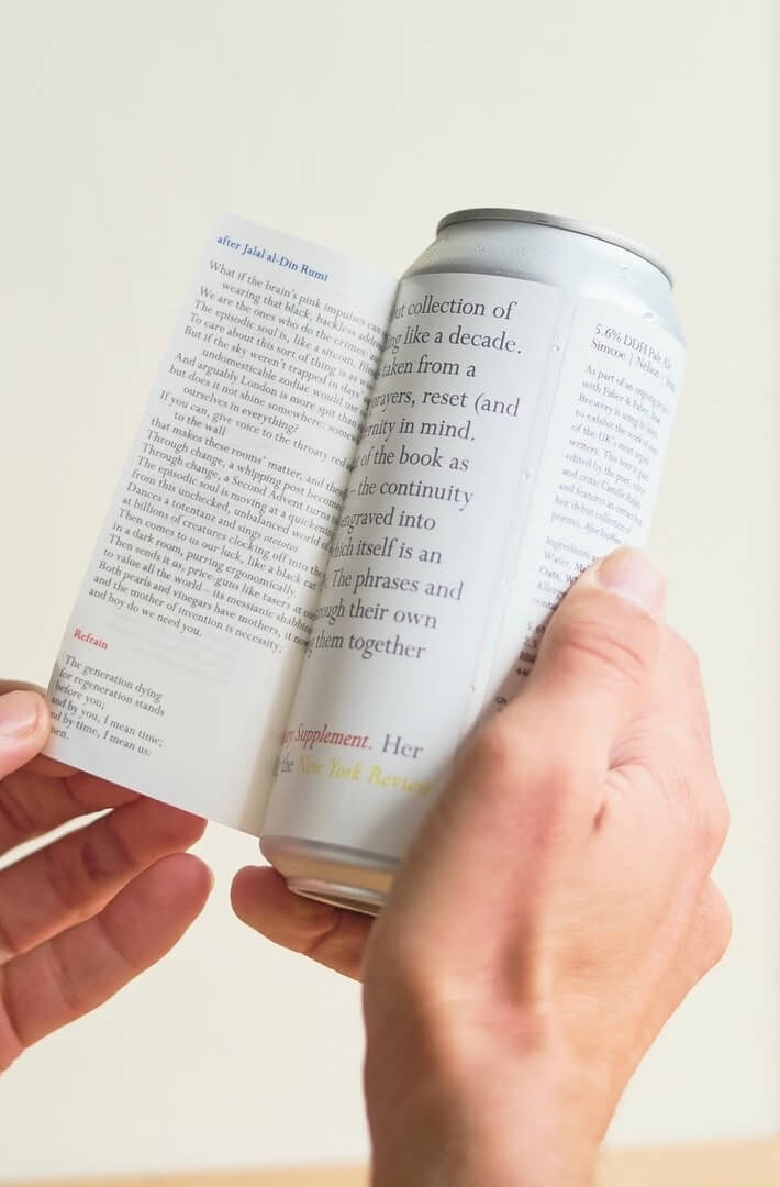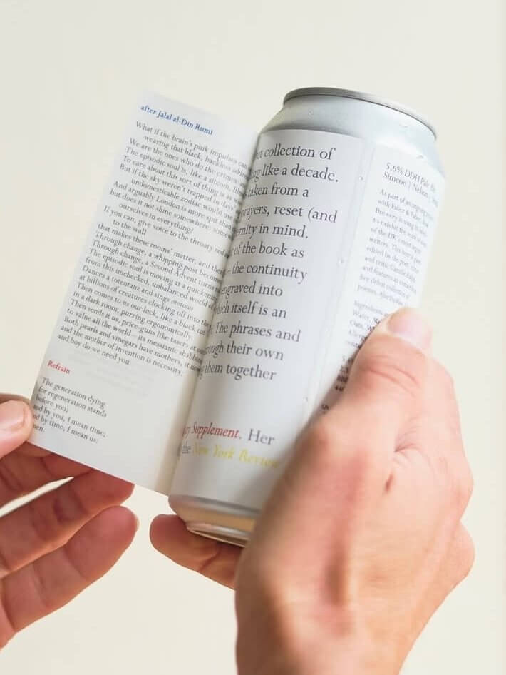 來自英國的精釀啤酒品牌 Beak Brewery 看見的,則是另一種喝酒方式。他們面對的是一群「喝酒不一定要醉、但一定要好玩」的清醒世代。於是,他們乾脆把閱讀也一起拉進來,推出一款可以「一邊喝酒、一邊看書」的啤酒,讓你用一瓶啤酒的時間,剛剛好讀完大約一千字的故事。