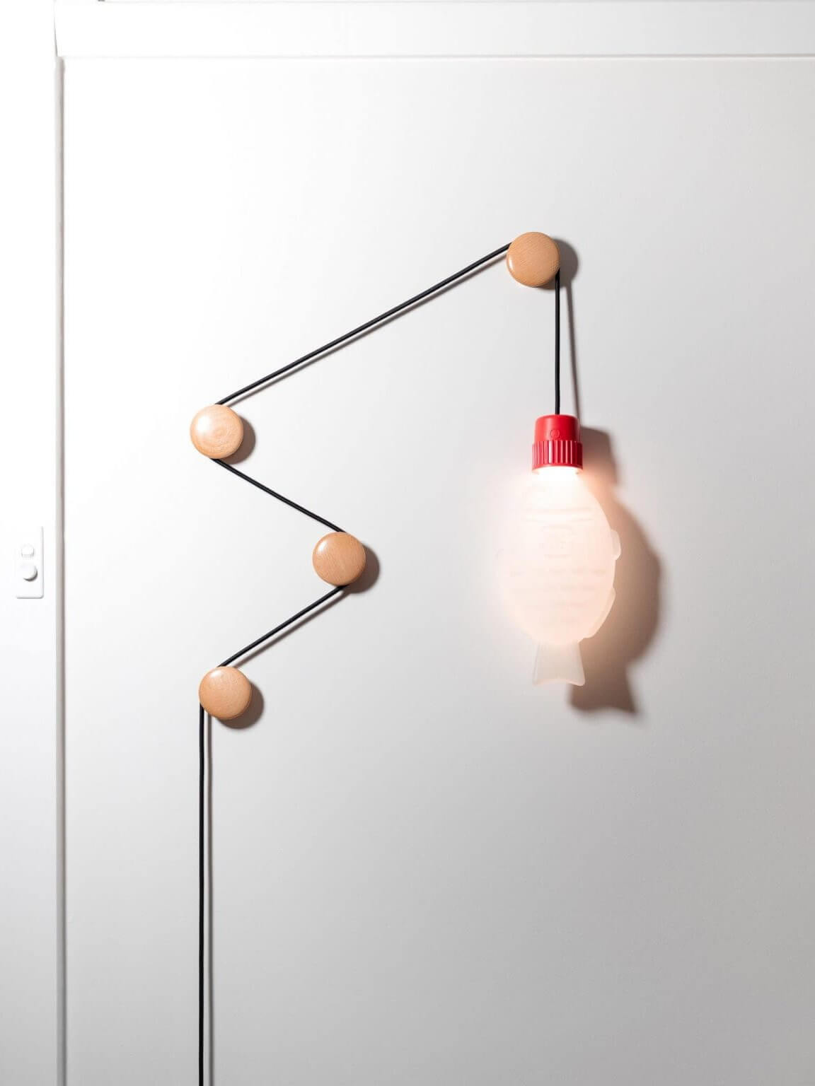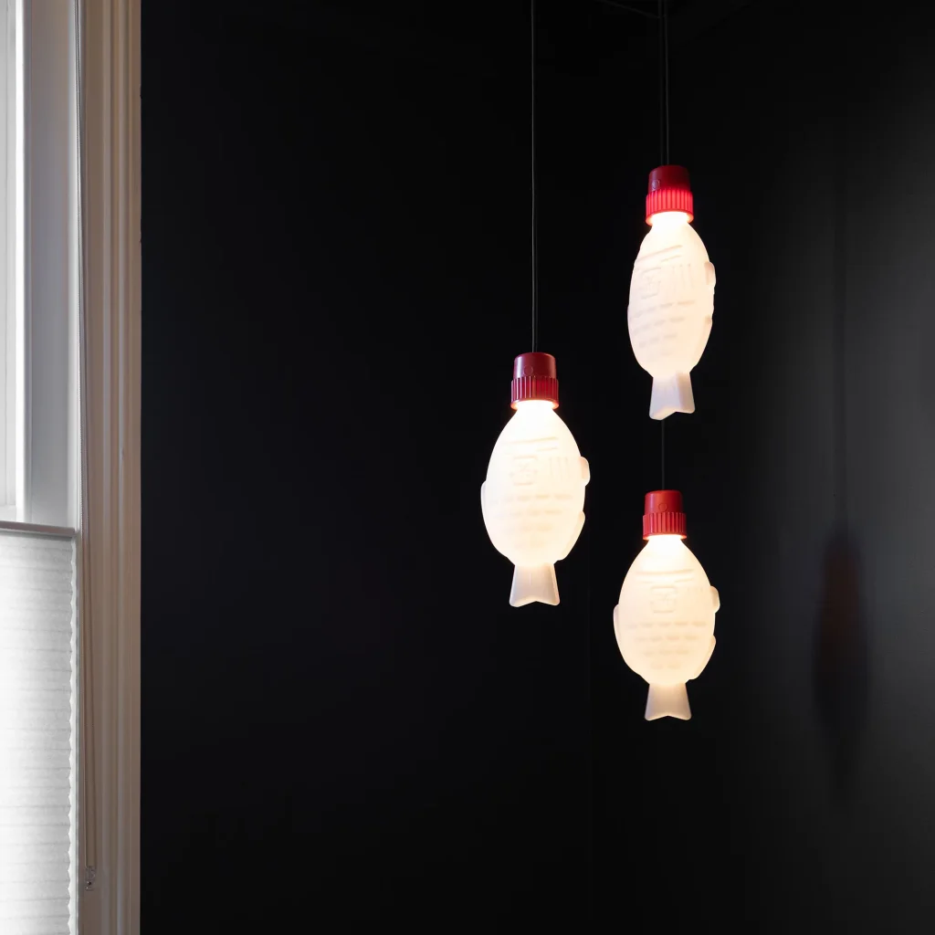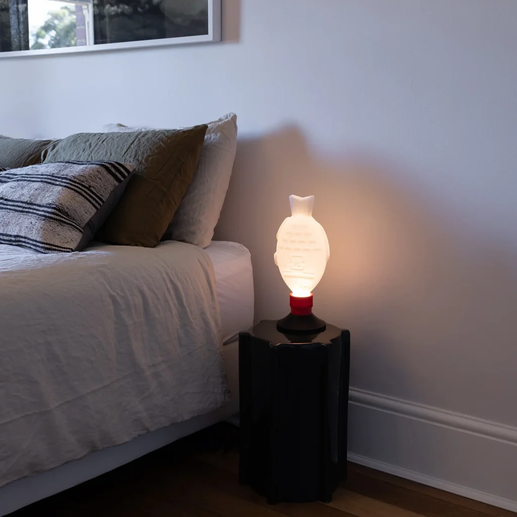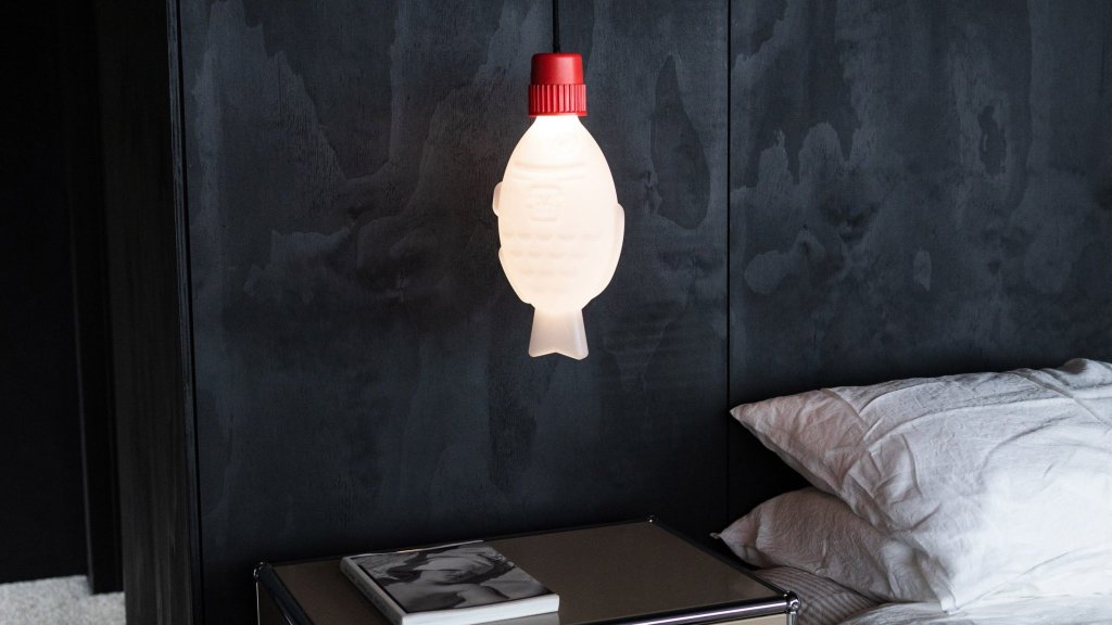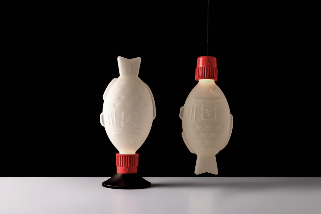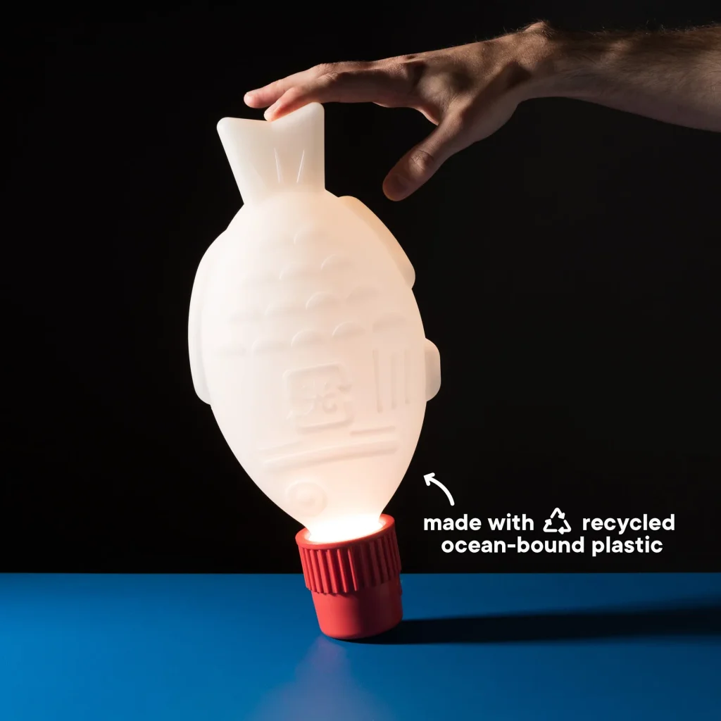 Heliograf 的兩位設計師 Jeffrey Simpson 與 Angus Ware 長期關注這些不起眼的廢棄物,最後決定以最熟悉的日常物件,魚型醬油瓶作為切入點,轉化成一盞幽默又富含寓意的燈:Light Soy。