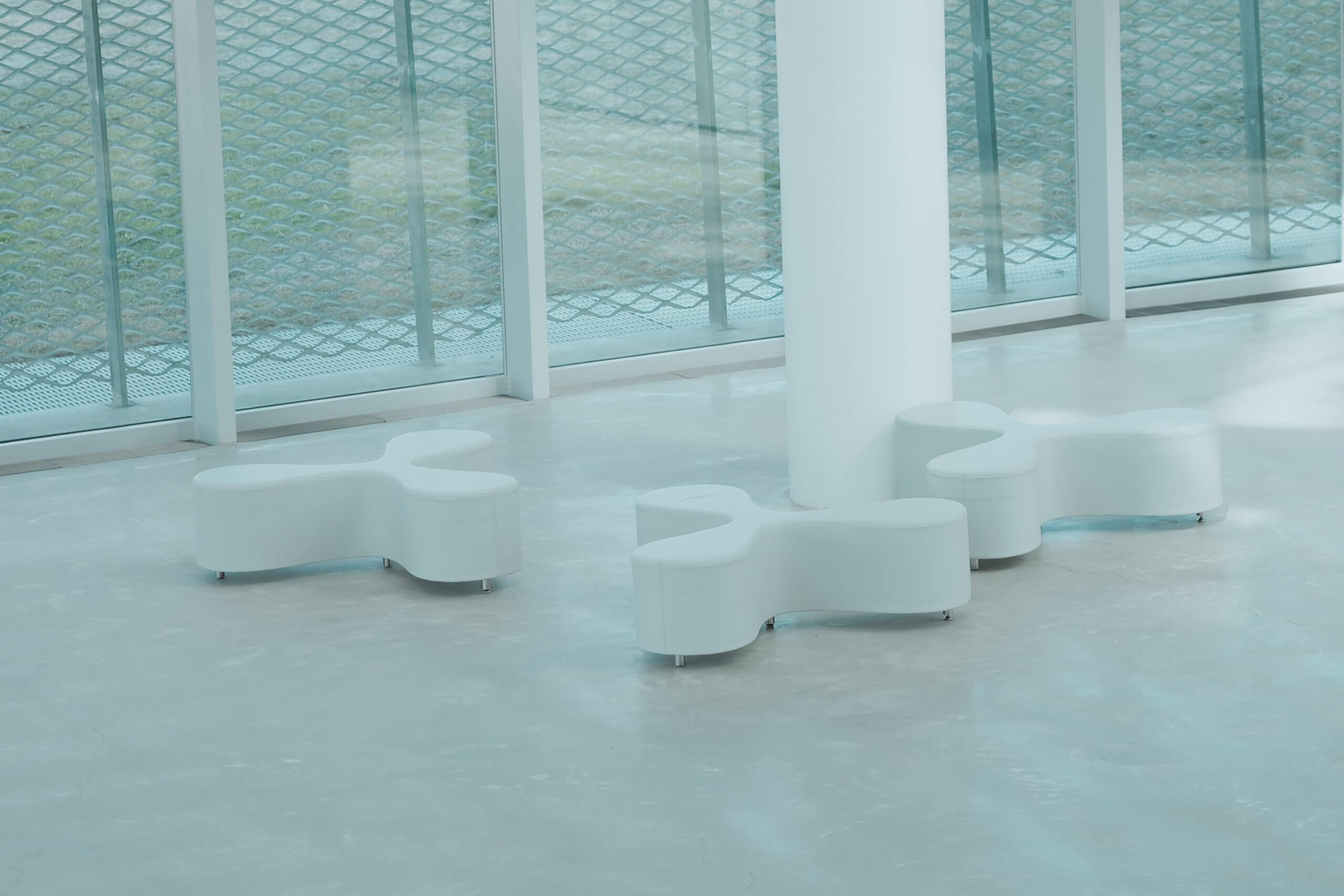 誕生於 2001 年伊斯坦堡雙年展的「花椅」,是 SANAA 作品中常見的熟悉身影。在綠美圖中,它以三瓣式結構呈現「盛開的一刻」,既可單獨使用,也能拼接成一片花叢。