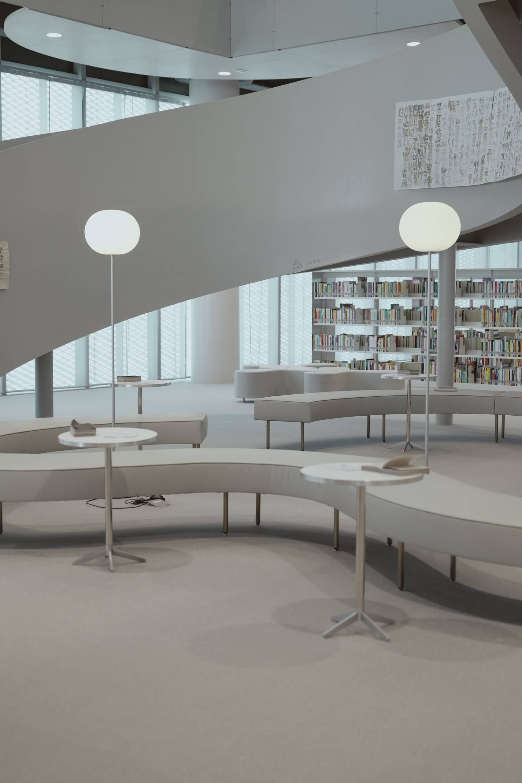 不過,真正走入綠美圖才會發現:這座建築的美,不只存在於外觀。散落於閱讀區、廊道與戶外草地的家具,同樣藏著 SANAA 特有的幽微細膩,也串連起丹麥經典家具、義大利燈具的設計語彙,使空間不只是「好看」,而是完整而和諧的感官體驗。以下帶你從家具開始,重新感受綠美圖的氣質——七件精心挑選的設計,讓人想多停留一會。