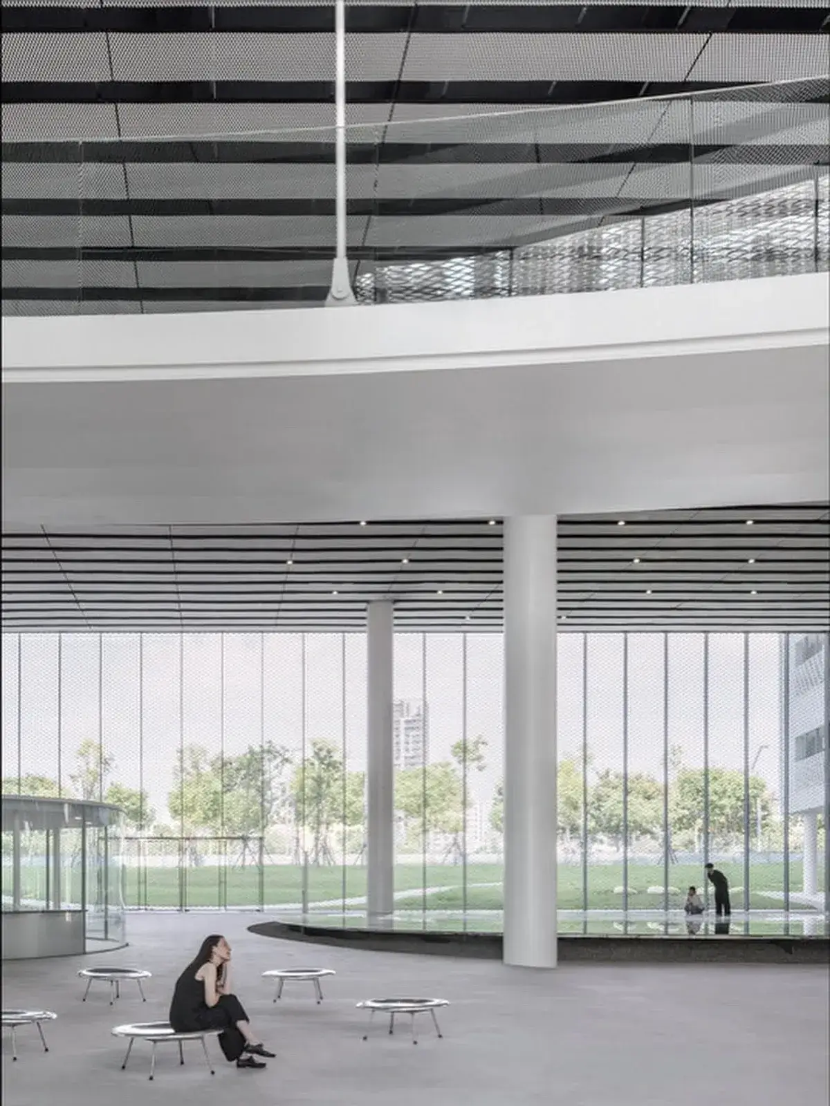 許多人期待的是 SANAA 的建築,但走進綠美圖之後才會明白:真正讓這座文化地標變得溫潤迷人的,是建築、光線、家具、草地與人的共同組合。