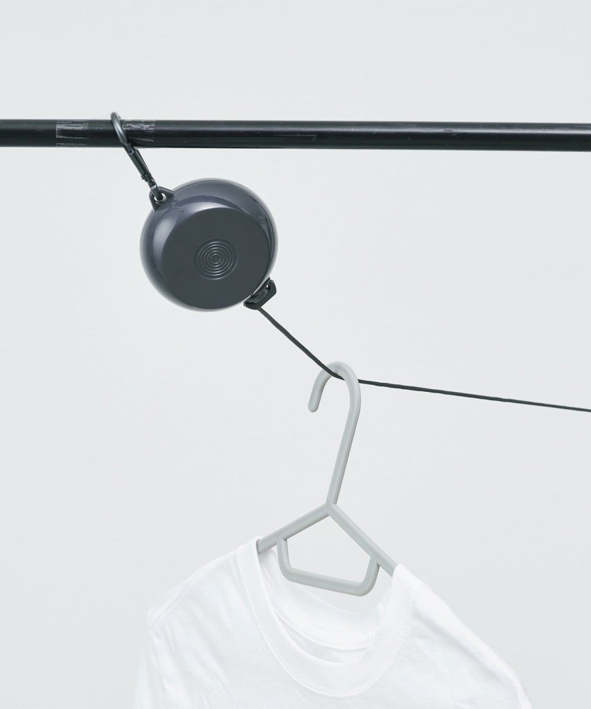 這不是一組笨重的曬衣架,而是一條被好好收進外殼裡的晾衣繩。平時貼在牆面或角落,幾乎感覺不到它的存在;需要時拉出來,固定好另一端,就能立刻變出一條曬衣線。