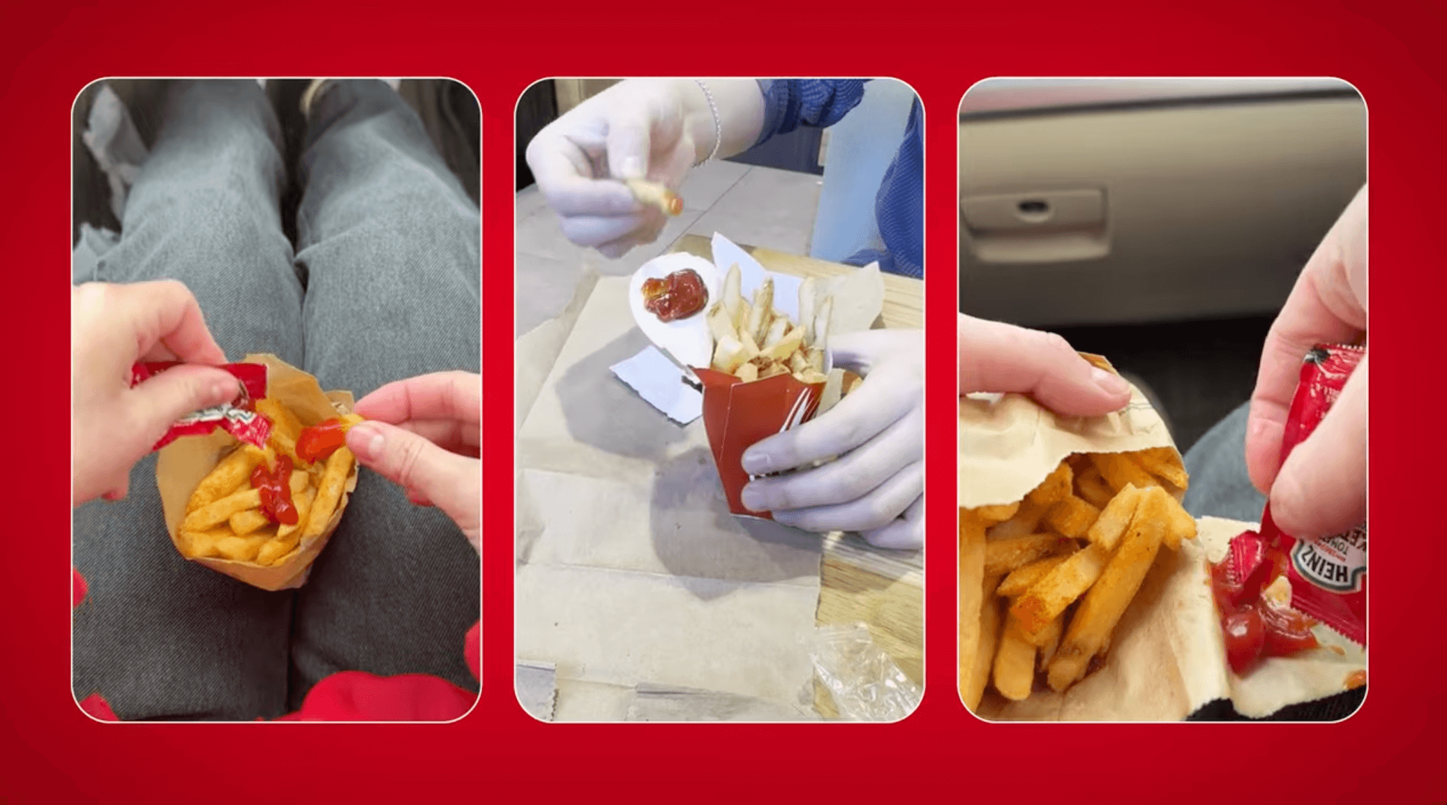 這個設計並不是為了「看起來很聰明」,而是來自真實的使用經驗。HEINZ 在調查中發現,多數人在外食時都曾打翻番茄醬,甚至有人因此索性放棄沾醬。於是,他們重新思考薯條盒的角色,它不該只是盛裝食物,而是能夠回應外帶、邊走邊吃、看球賽等各種移動中的飲食場景。