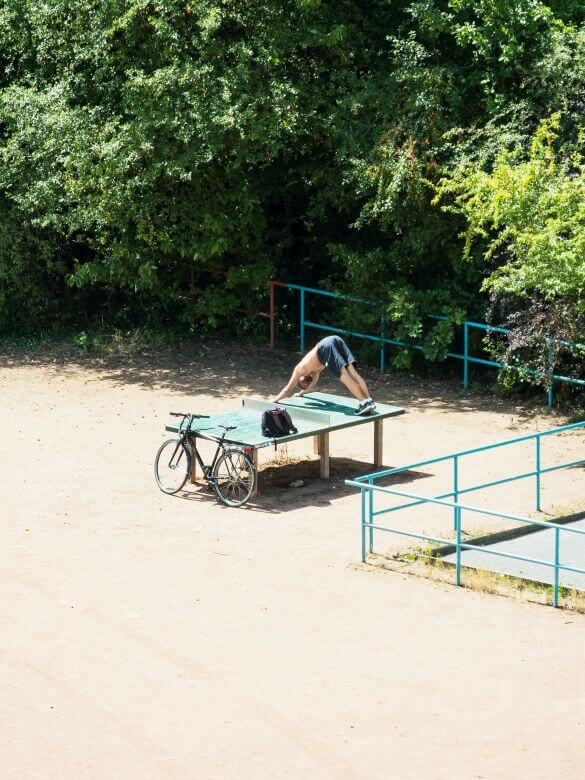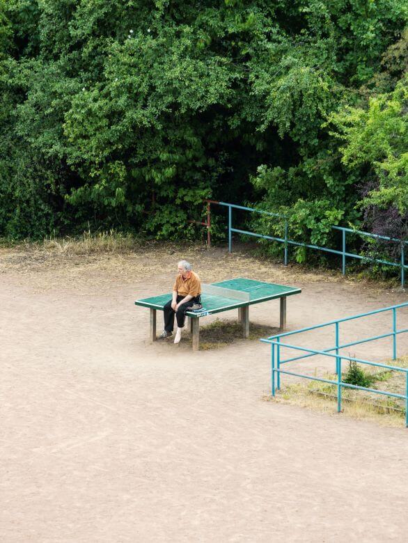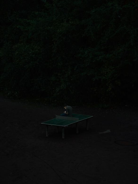 在德國萊比錫的住處,他的窗外正對著一張戶外乒乓球桌。於是,他把相機架在固定位置,用四年時間,反覆拍攝這張乒乓球桌,沒有移動、沒有更換視角,也沒有設定戲劇性的目標。這個名為《TTP(Tennis Table Project)》的系列,成為當代攝影中少見、卻極具說服力的長時間觀察計畫。