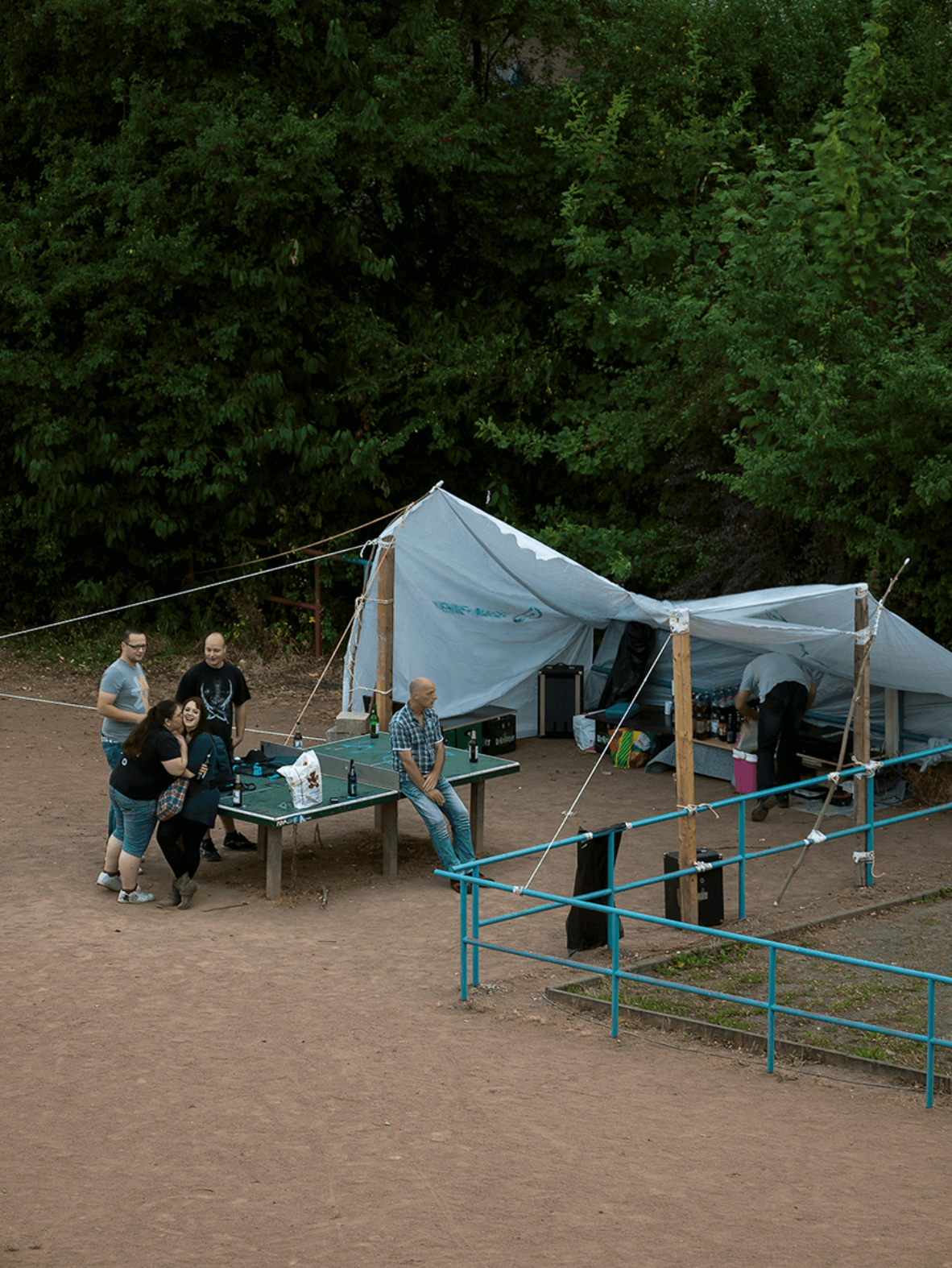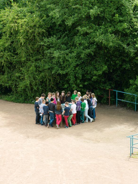 居民、路人、小孩、情侶、喝醉酒的人、下雪的夜晚、節日的空景,乒乓球桌成為一個舞台,而世界在不經意間輪流上場。有人把桌子當成休息的平台,有人翻越、坐下、躺臥,有時甚至完全忽略它的存在。