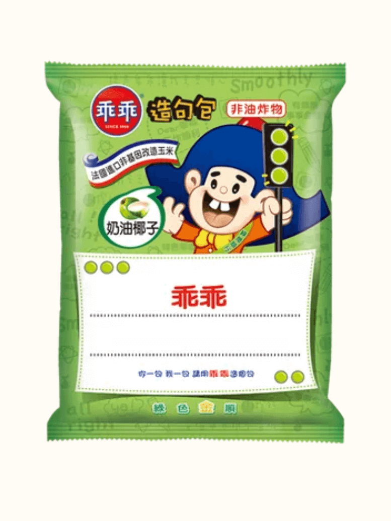 印有奈良標誌性的短髮女孩,神情帶點倔強與天真。 - 奶油椰子(綠色包裝)