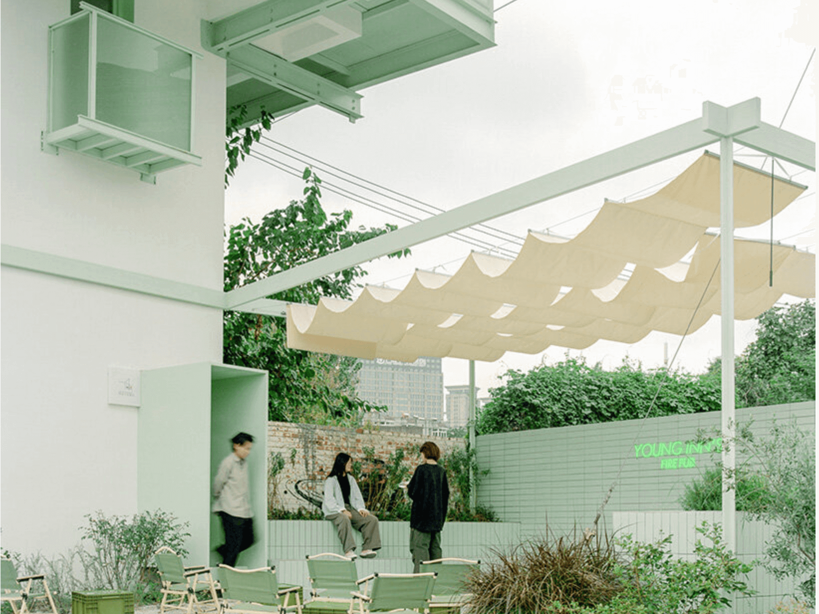 SZ-Architects 在為園區另一間餐廳進行設計時,偶然注意到這座未被翻新的崗哨塔,提出將其改造成微型書店的想法。曾經專責監視的建築,如今被設定為「無人看守」。概念的反轉,比形式更有力量。