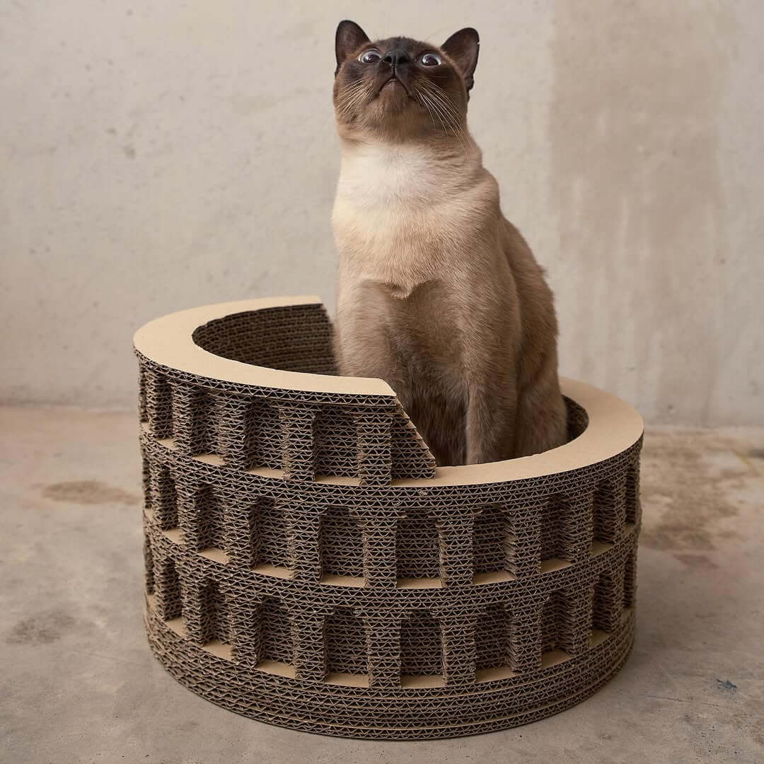 如果你本來就喜歡這類把藝術與寵物用品結合的設計,那麼 Meowseum 自家的建築系列,大概也會讓人忍不住想多看幾眼。從羅馬競技場、希臘神廟、愛奧尼柱、人面獅身像,到倫敦大笨鐘,這些熟悉的建築語彙被縮小、轉譯成適合貓咪玩耍與休息的抓板。它們既保留了辨識度,也沒有失去貓抓板最根本的實用性。