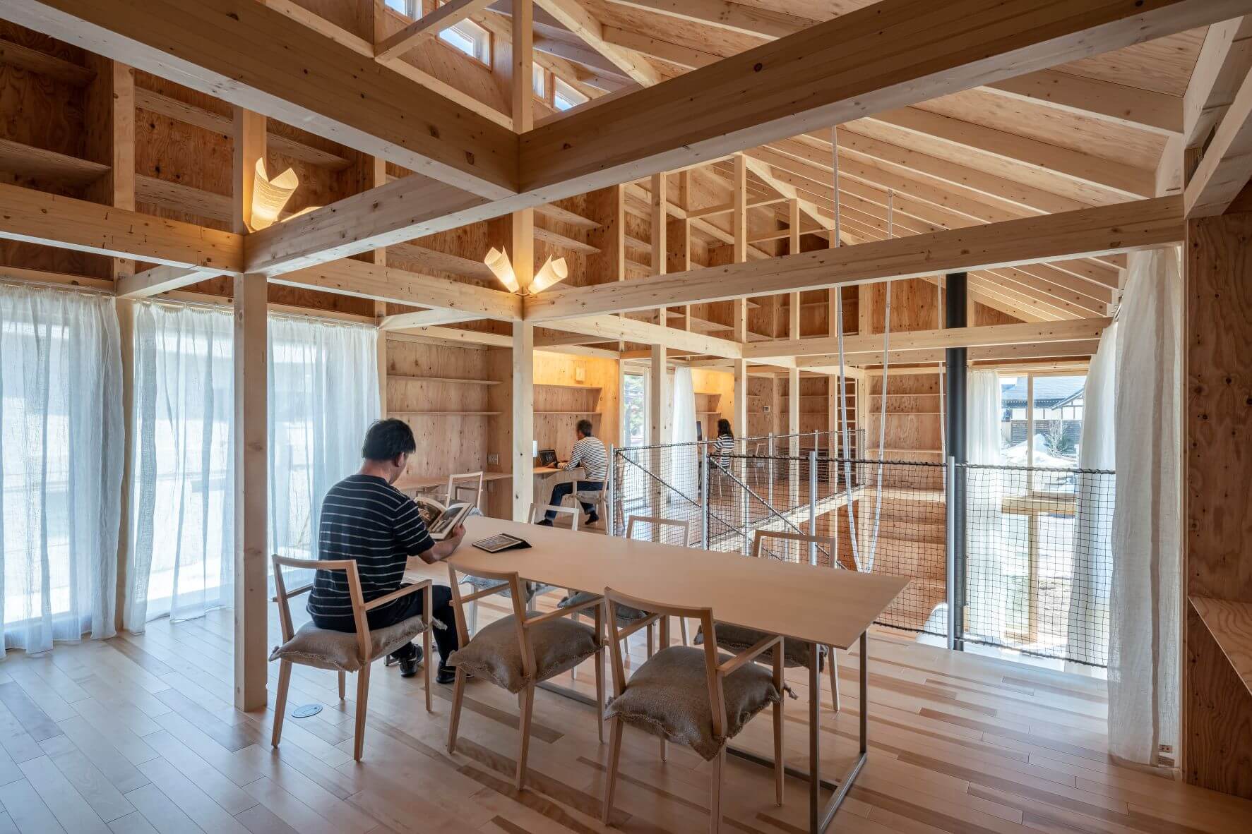 建築常常以界線的方式存在著,上班進到辦公室,下班回到家,像是在兩個「盒子」間奔波。一場疫情,改變了人類們的生活型態,在都市裡的四處奔忙,如今能稍微喘息,回望自己原本身處的家鄉,開始探索新的生活模式,而隈研吾也在這期間提供了員工、在地居民一種新的工作形式與空間。