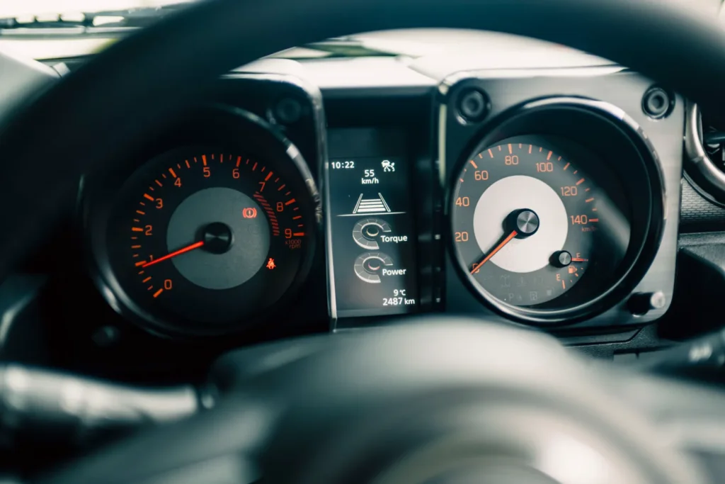 更意外的是,這次連手排車型都配上了 ACC 主動車距調節巡航系統。雖然低於約 30km/h 就會解除,也沒有全速域跟停功能,但放在高速公路巡航情境裡,還是很實用。過去你很難把「手排小型越野車」和「ACC」聯想在一起,現在 Jimny 真的做到了。